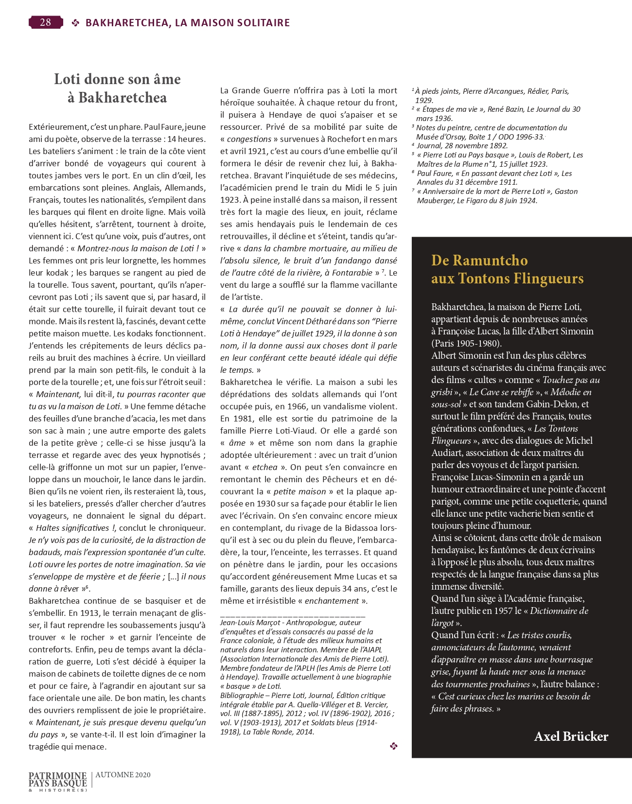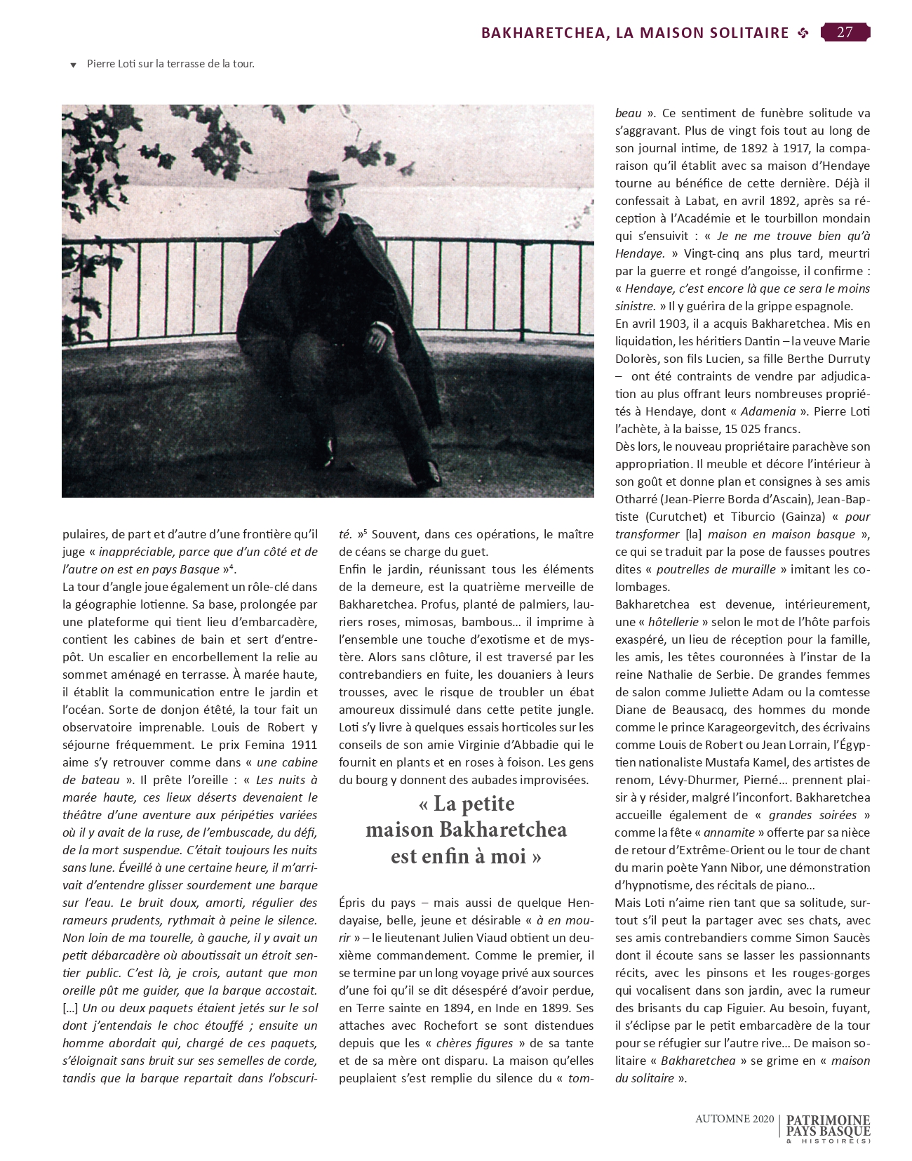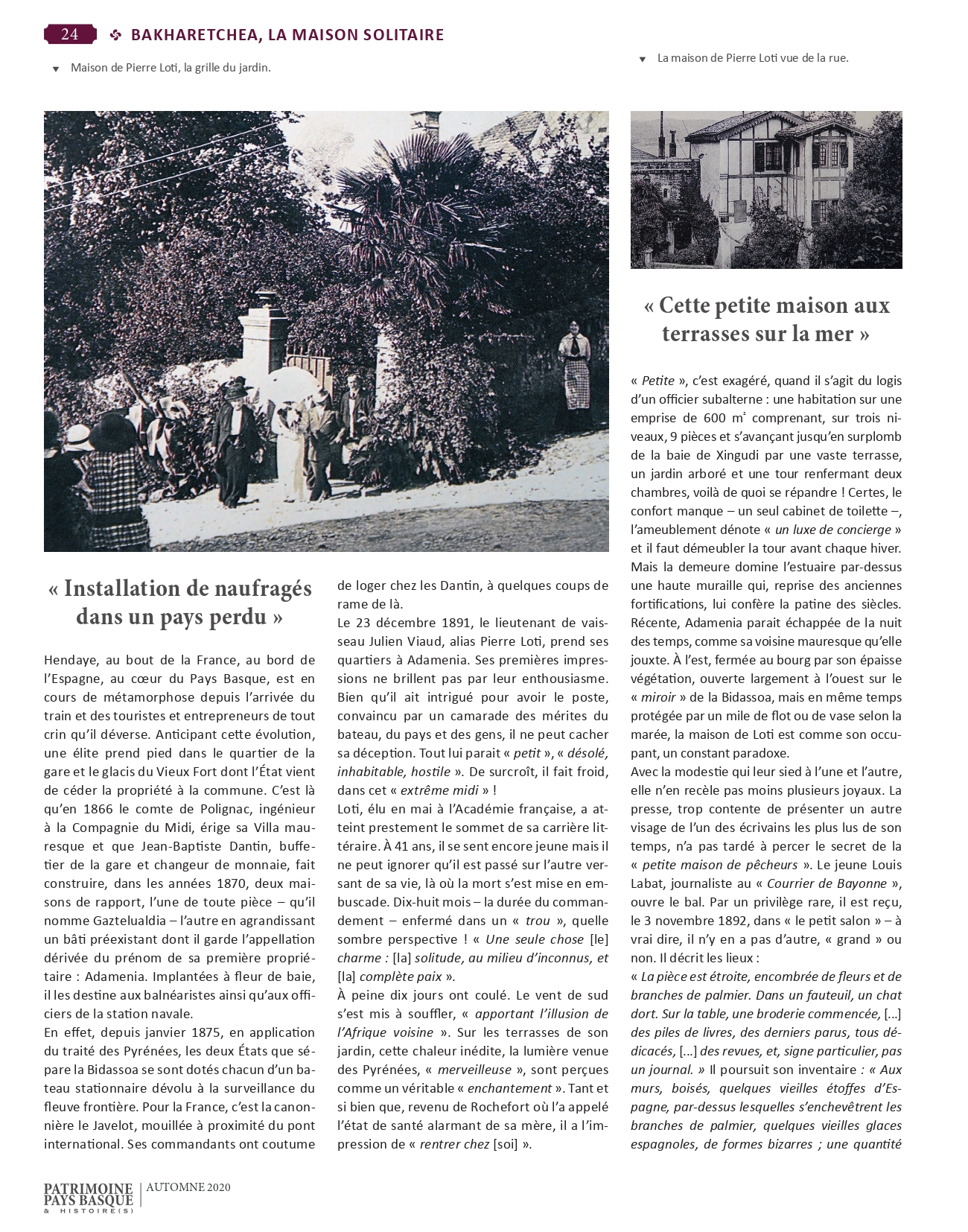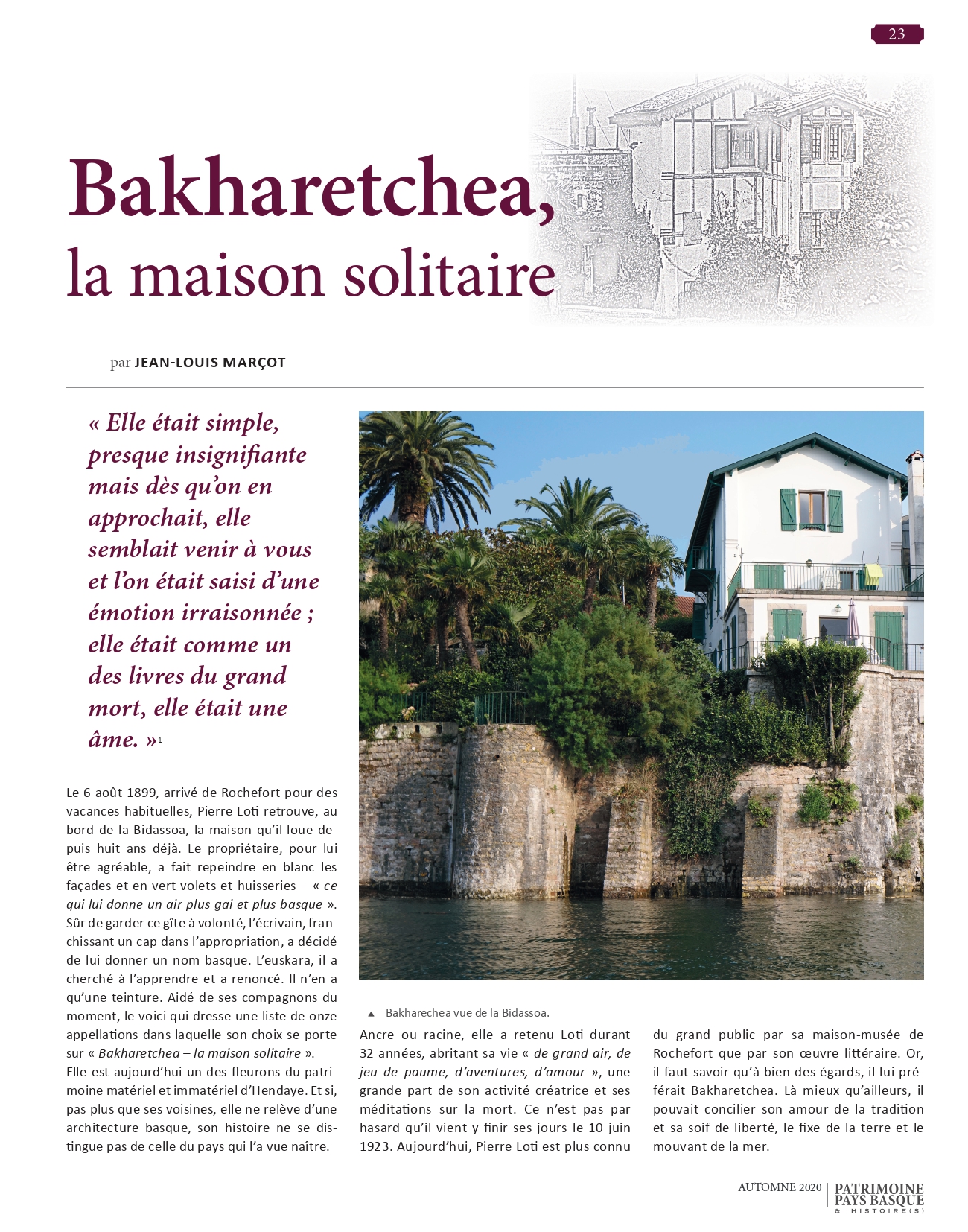 Bakharetchea, la maison solitaire par Jean-Louis Marçot dans la revue Patrimoine Pays Basque