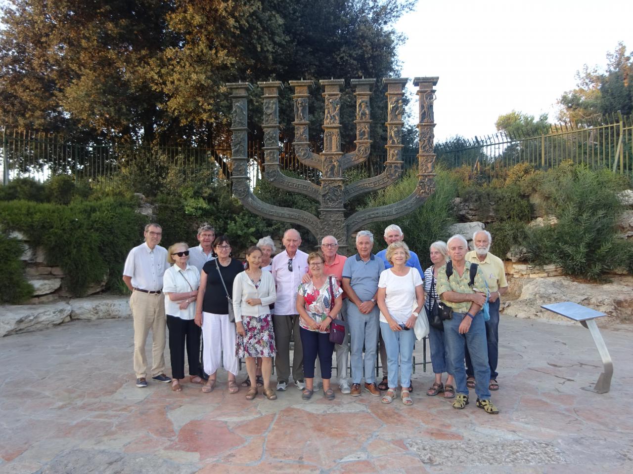 Le lendemain, nous étions dans la partie moderne de Jérusalem pour visiter des lieux de mémoire, tels le très émouvant Mémorial de la déportation de Yad Vashem, édifié en souvenir des victimes de l’Holocauste et des Justes qui cherchèrent à les sauver et l’intéressant Musée d’Israël où l’on découvre maquettes et manuscrits relatifs à l’histoire du Pays. En fin de journée, sur la colline de Givat Ram où se trouve la Knesset, le Parlement israélien, nous avons posé devant la Ménorah, emblème officiel de l’Etat d’Israël, située en bordure du Jardin des Roses, face au Parlement.