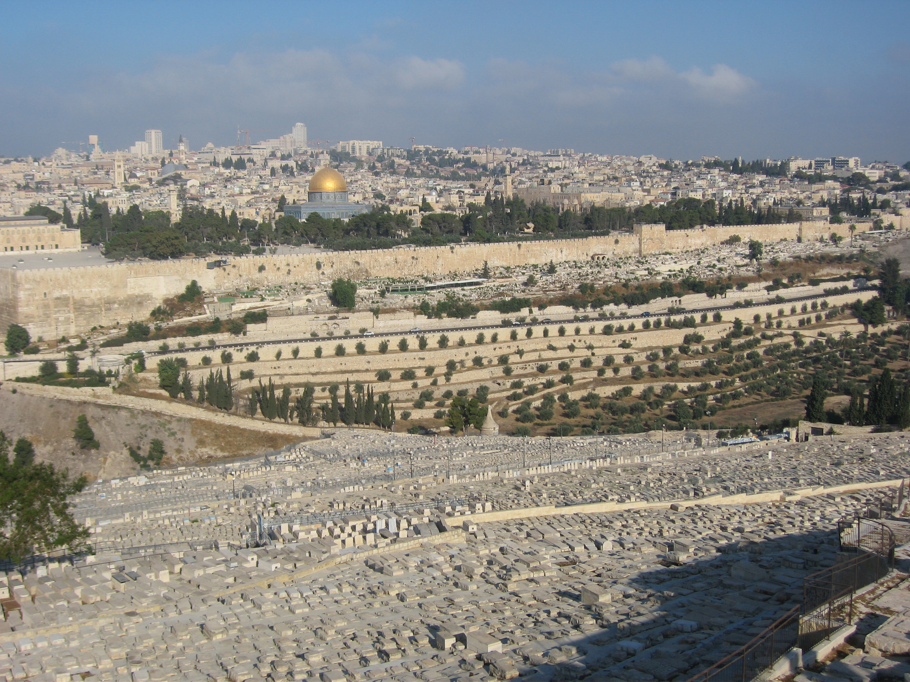 Deux jours entiers furent consacrés à la visite de Jérusalem. On commença par la Vieille ville, où nous retrouvions tous les sites du pèlerinage lotien : Le Mont des Oliviers, le Jardin du Gethsémani (sites hors les Murs), puis le cœur de Jérusalem avec les 3 sites des religions monothéistes : Le Saint-Sépulcre, l’Esplanade des Mosquées, le Mur des Lamentations.