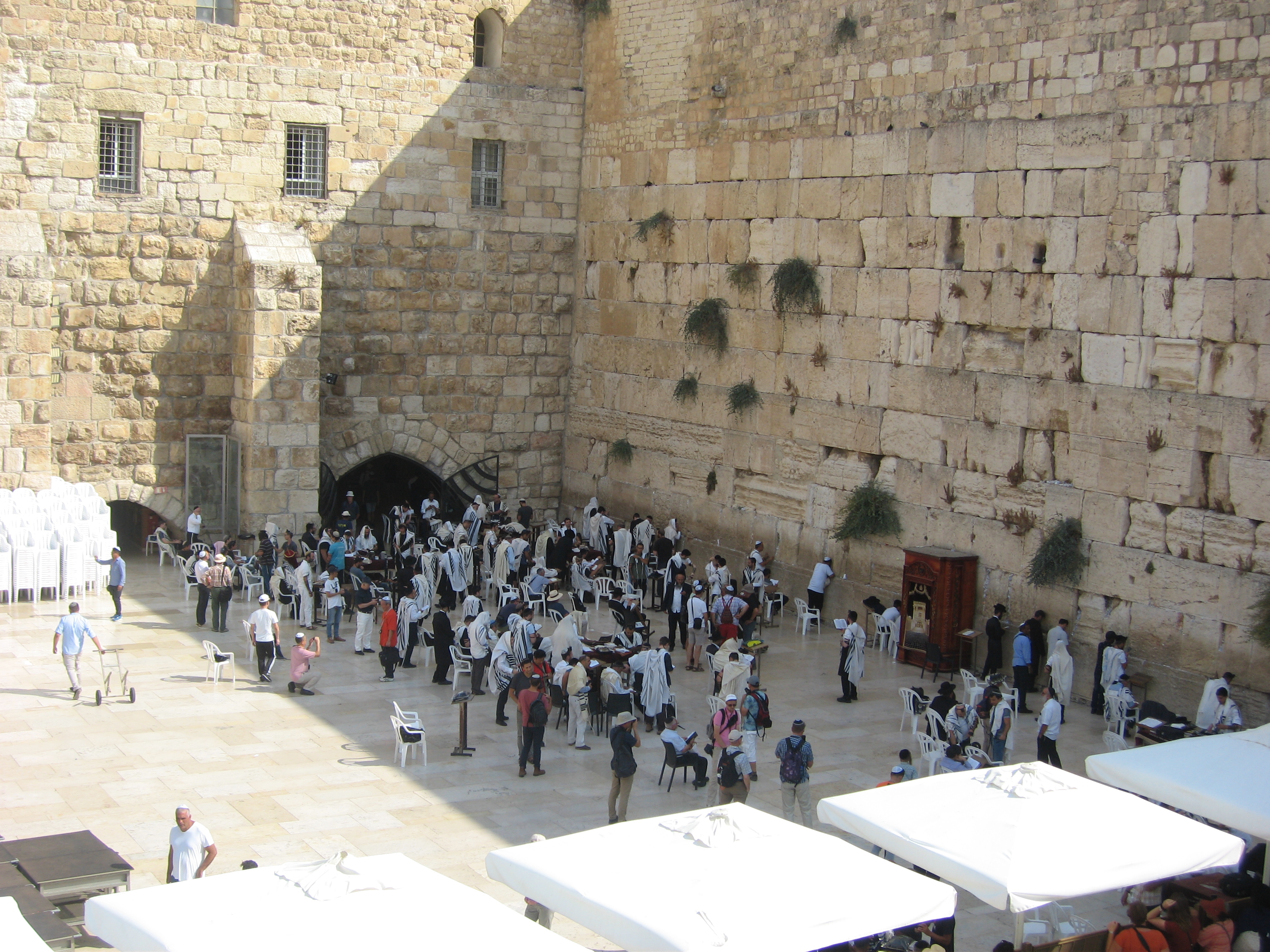 Le Mur des Lamentations est séparé en deux parties : côté gauche pour les hommes, côté droit pour les femmes. Il est accessible à tous et certains d’entre nous sont allés glisser une prière dans les interstices du Mur. J’ai pu constater que les Israélites pratiquantes quittent le Mur à reculons, tout doucement, les prières aux lèvres.On ne tourne pas le dos au Mur, lieu sacré pour les Juifs ! De ce lieu, qui lui était interdit d’accès, Loti a laissé quelques pages à oublier…