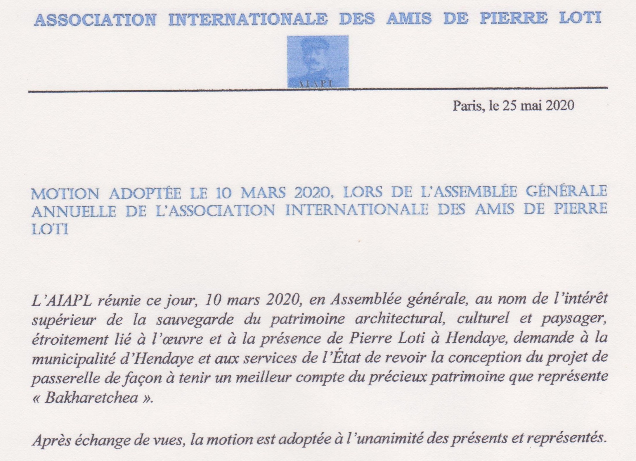 MOTION de l’AIAPL : Hendaye, le projet de passerelle irrite les Amis de Pierre Loti