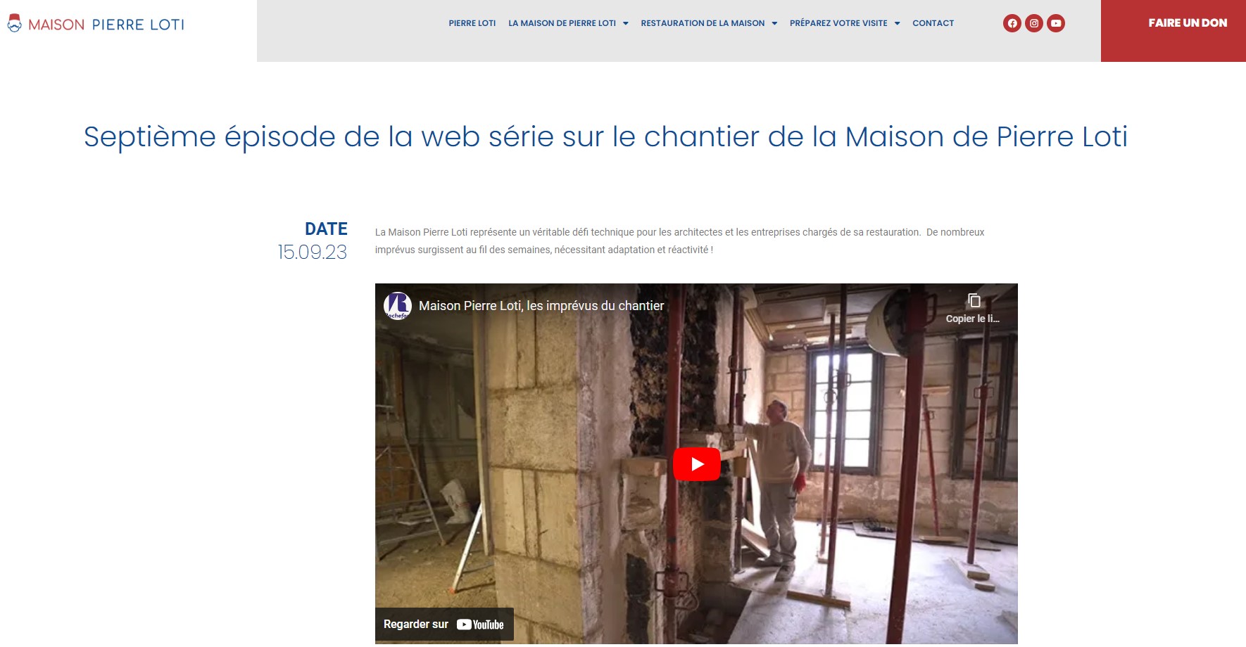 Septième épisode de la web série sur le chantier de la Maison de Pierre Loti Cliquez : https://youtu.be/26Q-ilDdavs Posted on 18 septembre 2023 by AIAPL