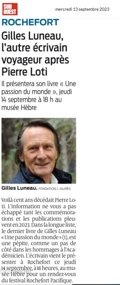 Rochefort : Gilles Luneau, l’autre écrivain voyageur après Pierre Loti