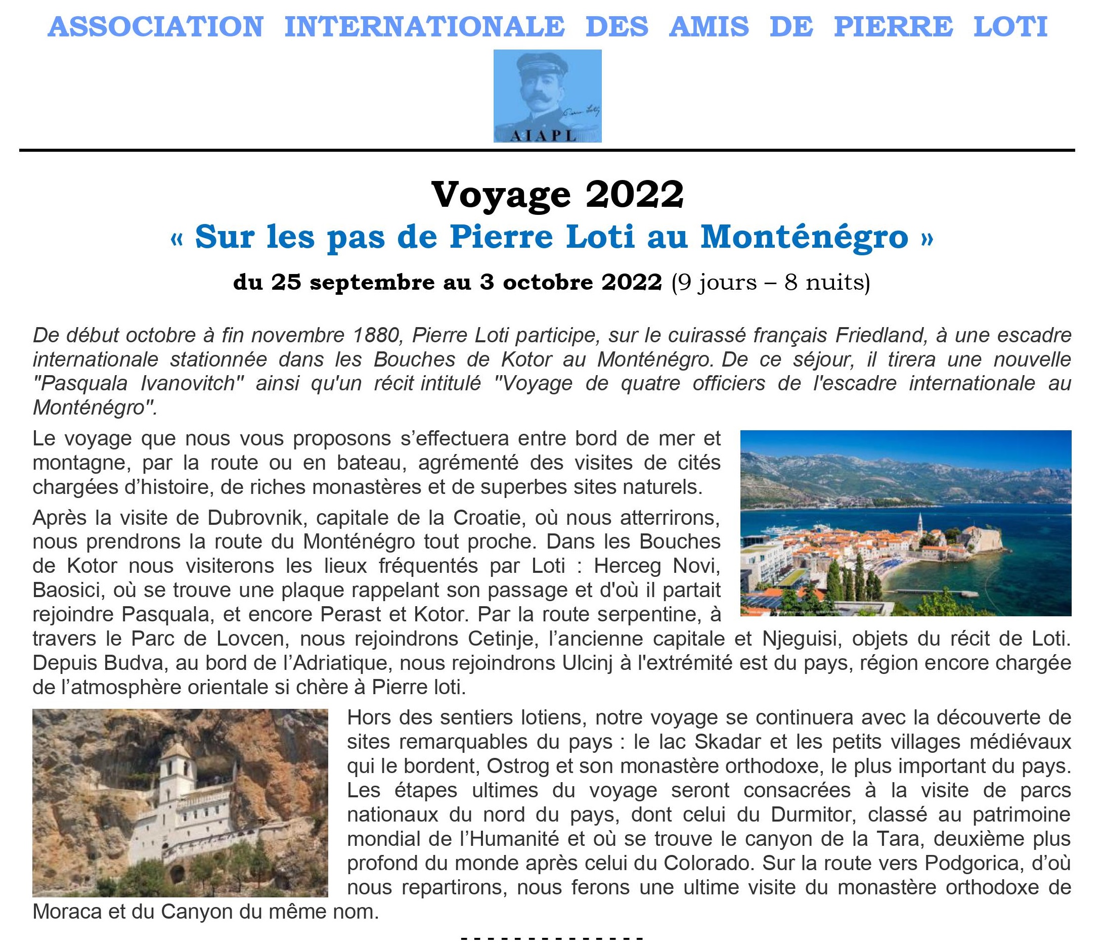 Voyage 2022 : « Sur les pas de Pierre Loti au Monténégro »