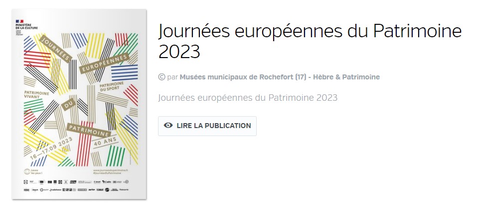Journées européennes du Patrimoine 2023 à Rochefort Découvrir le programme : https://www.calameo.com/books/0050028990b42e5f1e408 Posted on 7 septembre 2023 by AIAPL