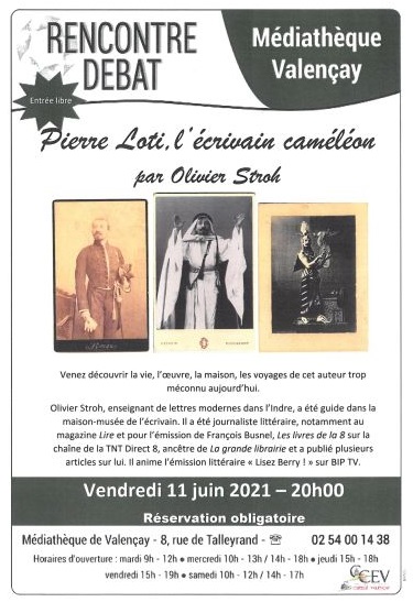 Rencontre-débat : Pierre Loti, l’écrivain caméléon par Olivier Stroh à la médiathèque de Valençay le 11 juin 2021 Posted on 9 juin 2021 by AIAPL