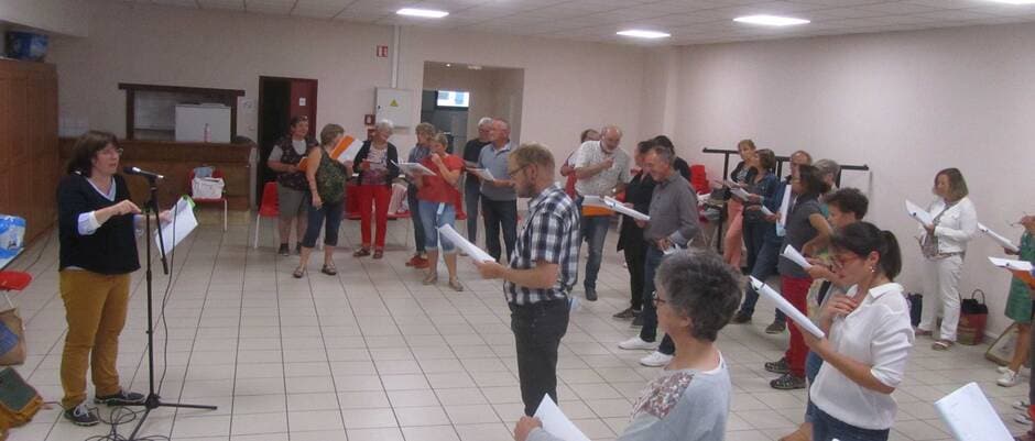 Tous les mardis soir, à la salle de l’Ermitage, les choristes de La Presqu’île à tue-tête répètent leur nouveau spectacle de chanson française, sous la direction de Séverine Cordier. | OUEST-FRANCE