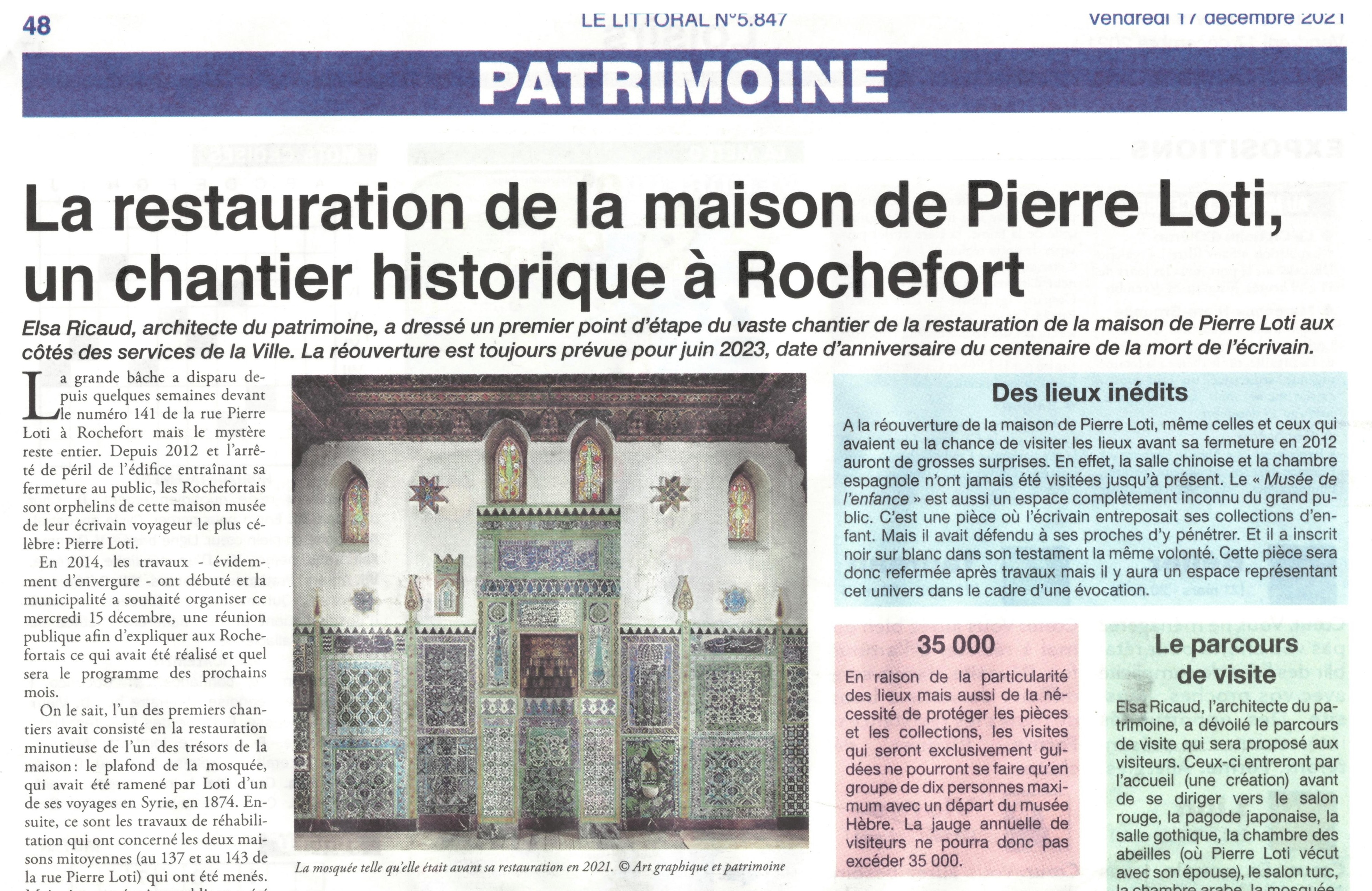La restauration de la maison de Pierre Loti, un chantier historique à Rochefort Posted on 25 décembre 2021 by AIAPL