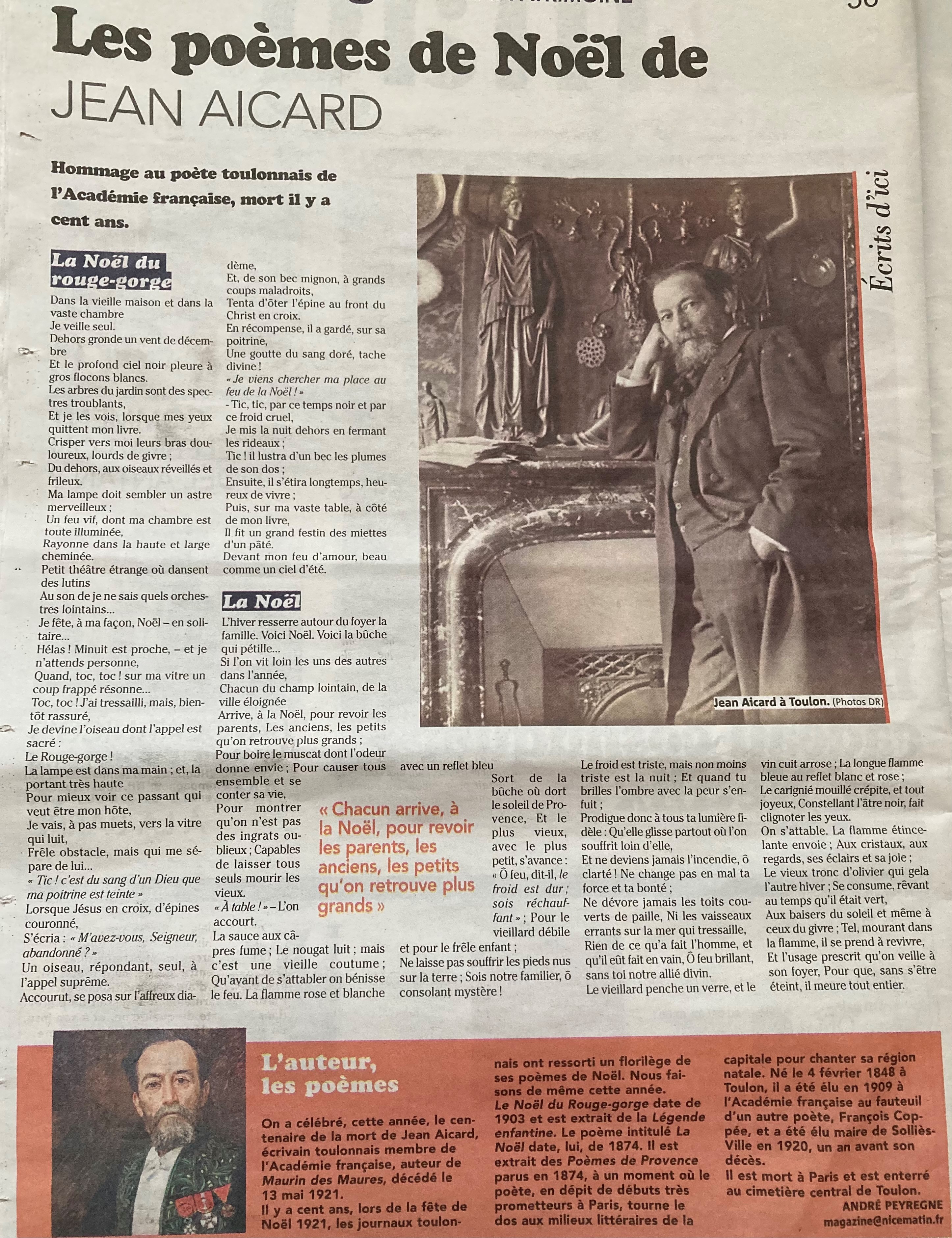Les poèmes de Noël de JEAN AICARD Posted on 1 janvier 2022 by AIAPL Transmis par Guy Raynaud Conseiller Municipal de la Ville de Toulon et Délégué aux Médiathèques et aux Archives