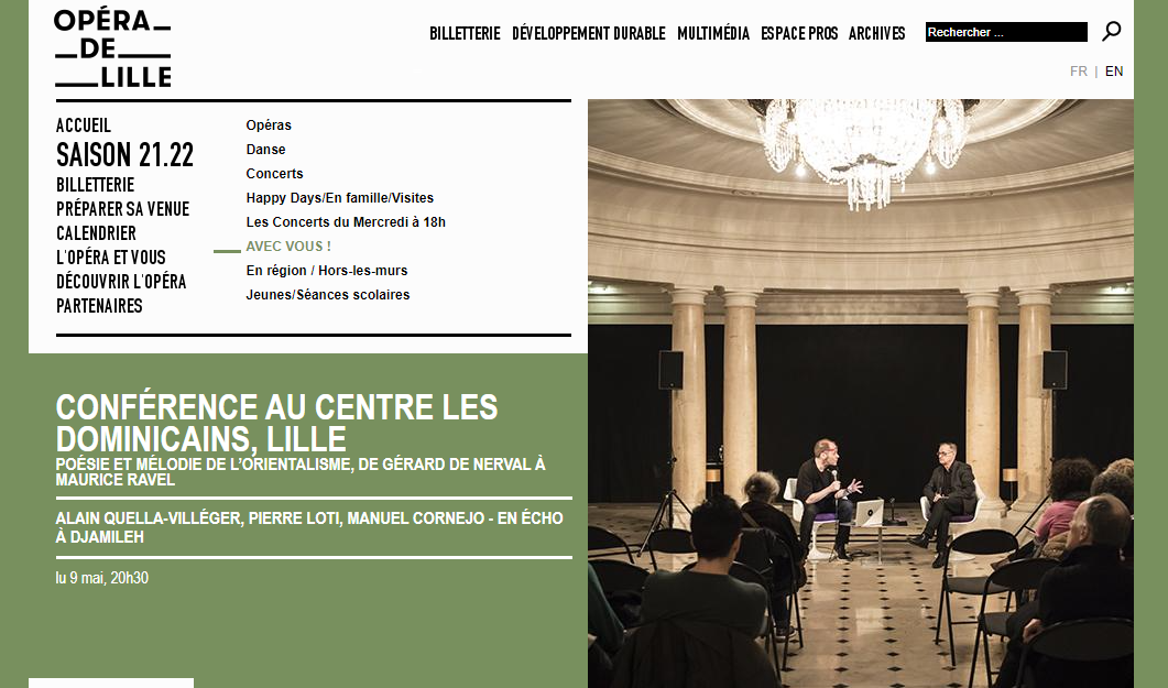 Lille, conférence au Centre Les Dominicains le 9 mai 2022 Posted on 24 avril 2022 by AIAPL https://www.operalille.com/fr/saison-21-22/bdd/cat/avecvous/sid/100110_conference-au-centre-les-dominicains-lille