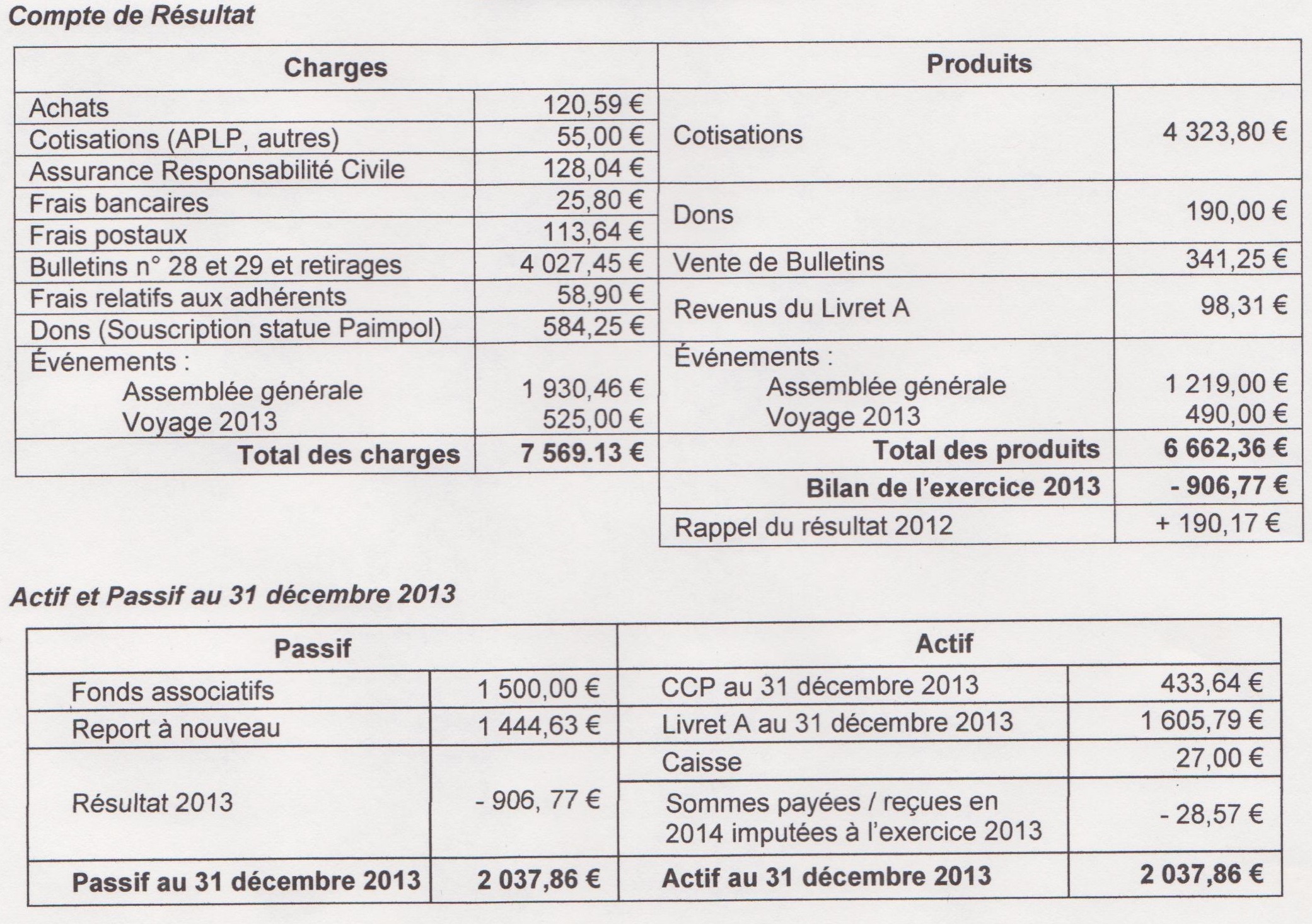 La trésorière, par décision unanime, pourra imputer le résultat négatif 2013 au report à nouveau.