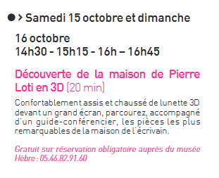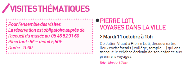 Pierre Loti : Programme Hèbre – octobre 2022 – Journées nationales de l’architecture Posted on 15 septembre 2022 by AIAPL https://www.calameo.com/books/005002899d60e141f5459
