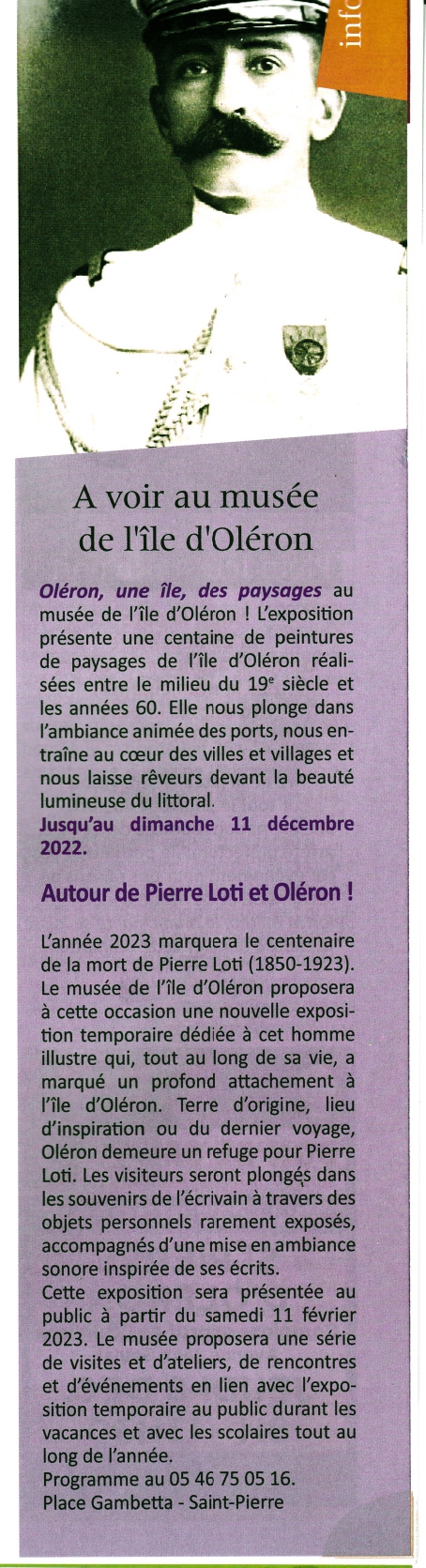 Autour de Pierre Loti et Oléron ! à partir du 11 février 2023 au musée de Saint-Pierre d’Oléron Posted on 9 décembre 2022 by AIAPL