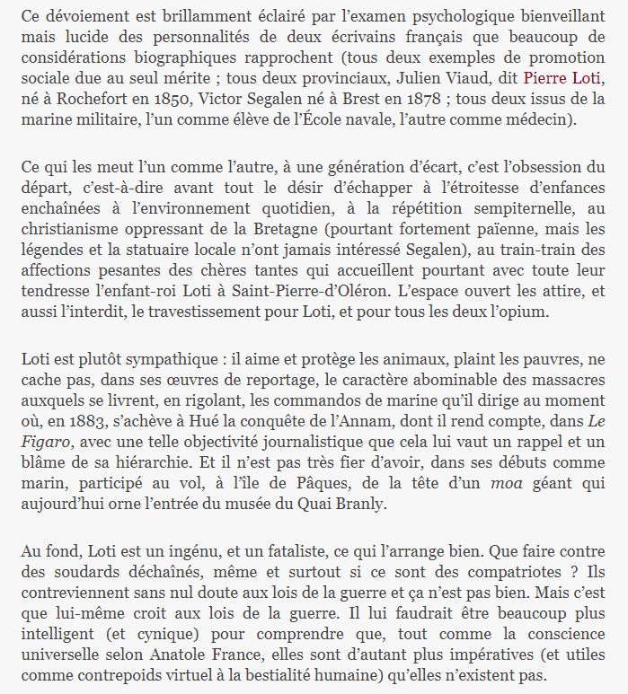 Exotisme, colonialisme, prédation Posted on 26 janvier 2023 by AIAPL https://www.en-attendant-nadeau.fr/2023/01/26/exotisme-predation-loti-segalen/