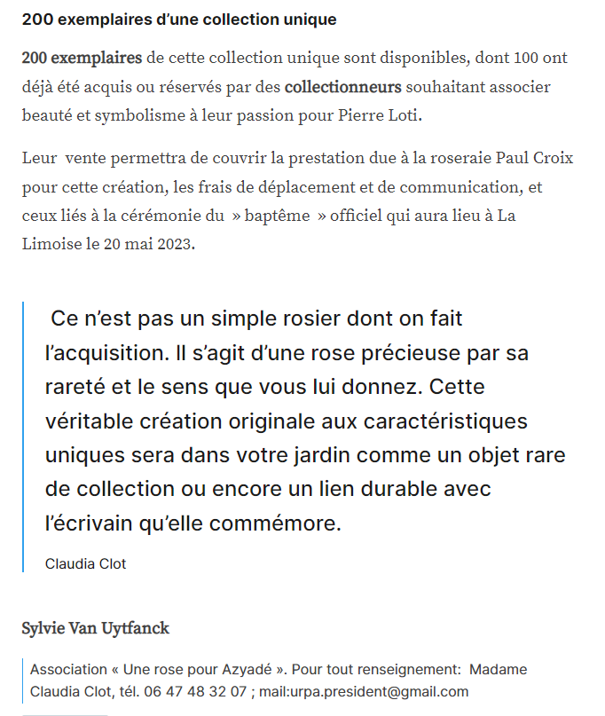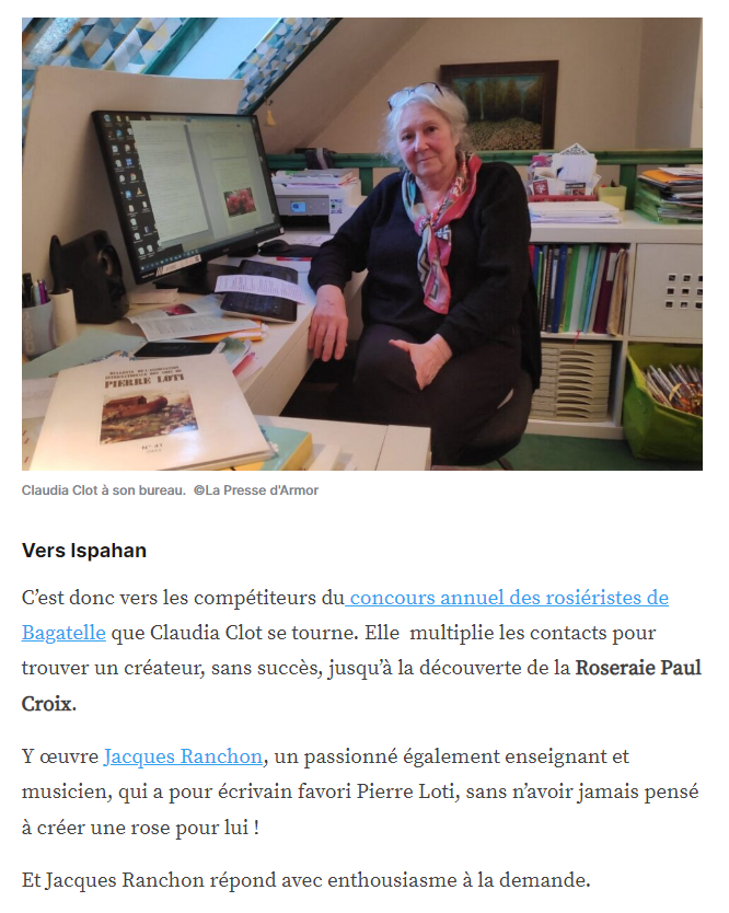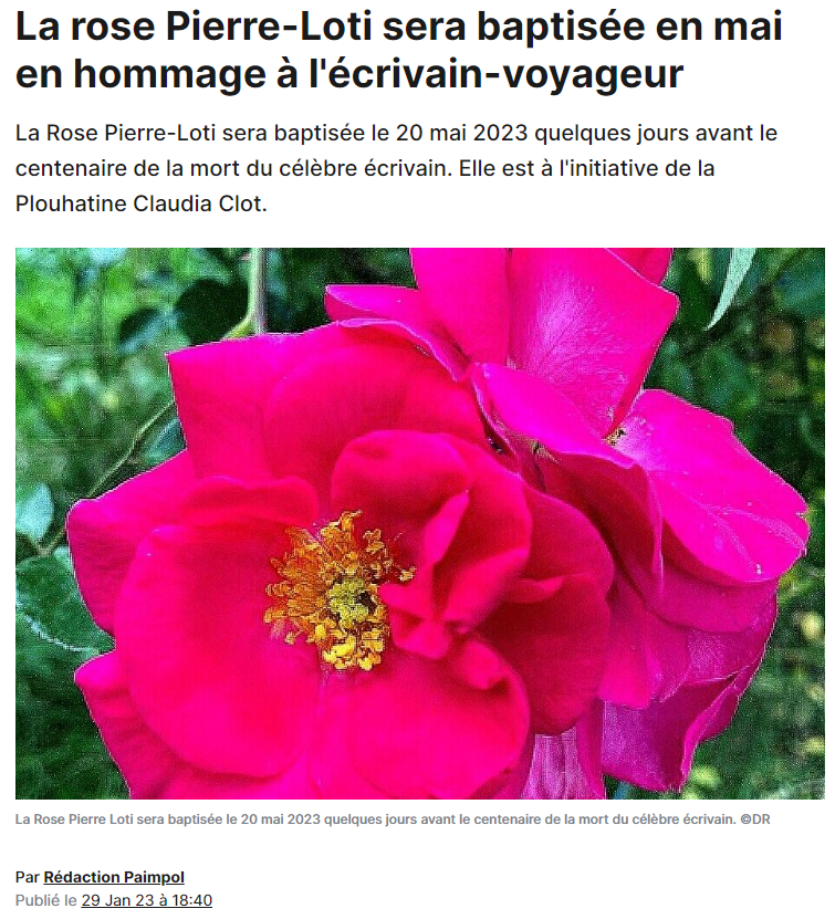 « Qui veut venir avec moi voir à Ispahan la saison des roses… » Posted on 30 janvier 2023 by AIAPL https://actu.fr/bretagne/plouha_22222/la-rose-pierre-loti-sera-baptisee-en-mai-en-hommage-a-lecrivain-voyageur_56944608.html