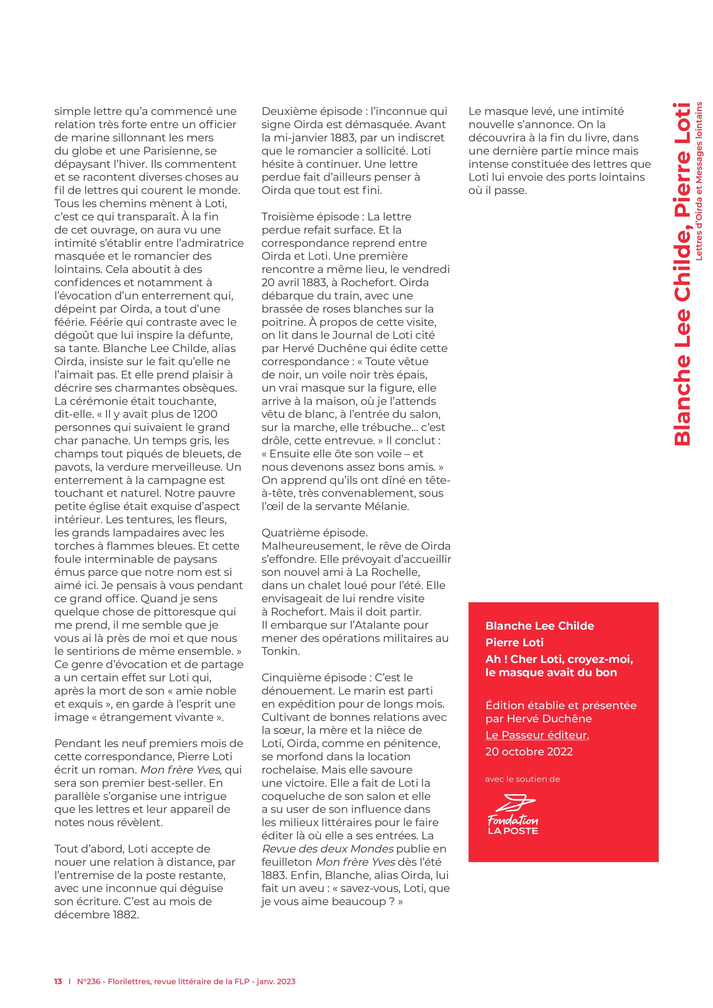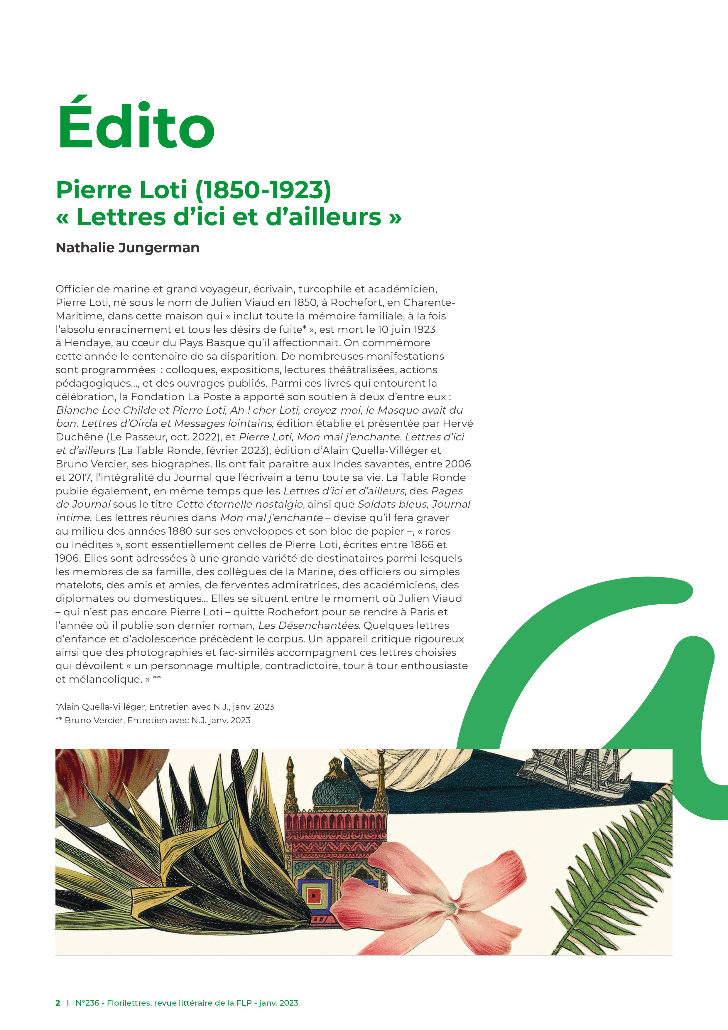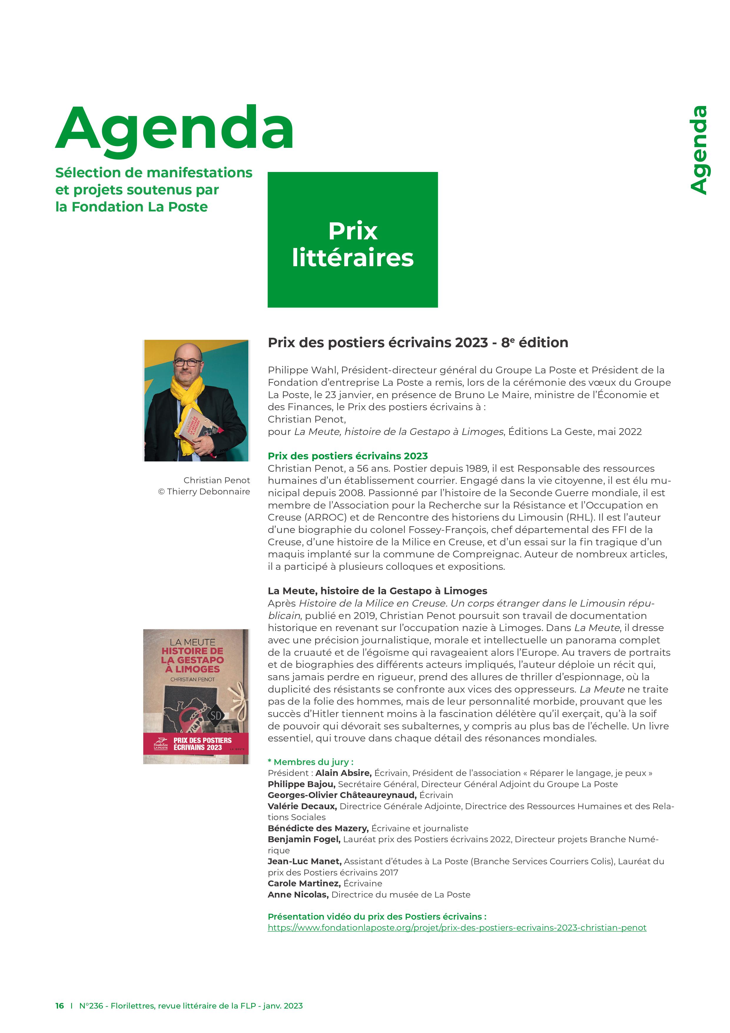 Fondation LA POSTE, Florilettres, revue littéraire de la Fondation La Poste Posted on 4 février 2023 by AIAPL florilettres