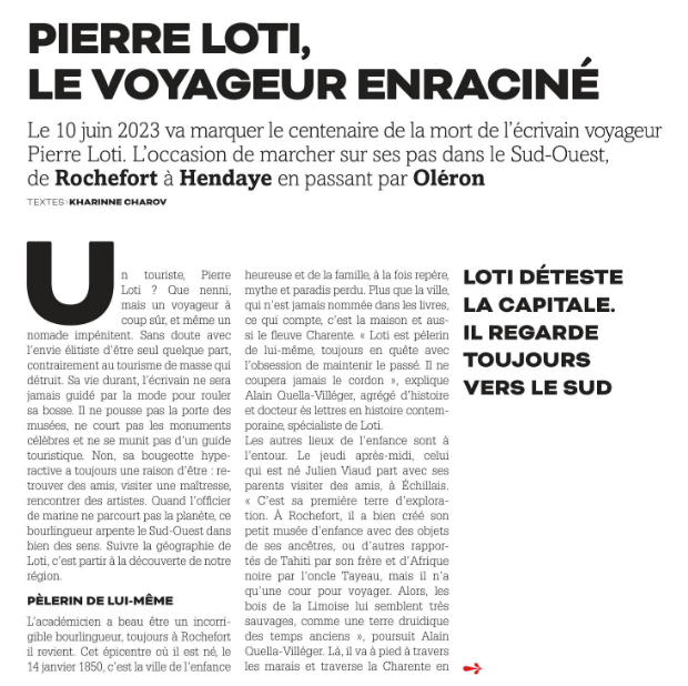 Le MAG Sud-Ouest : L’ANNEE LOTI, le Sud-Ouest de l’écrivain Pierre Loti, disparu il y a cent ans Posted on 4 février 2023 by AIAPL MAGSO-LOTI