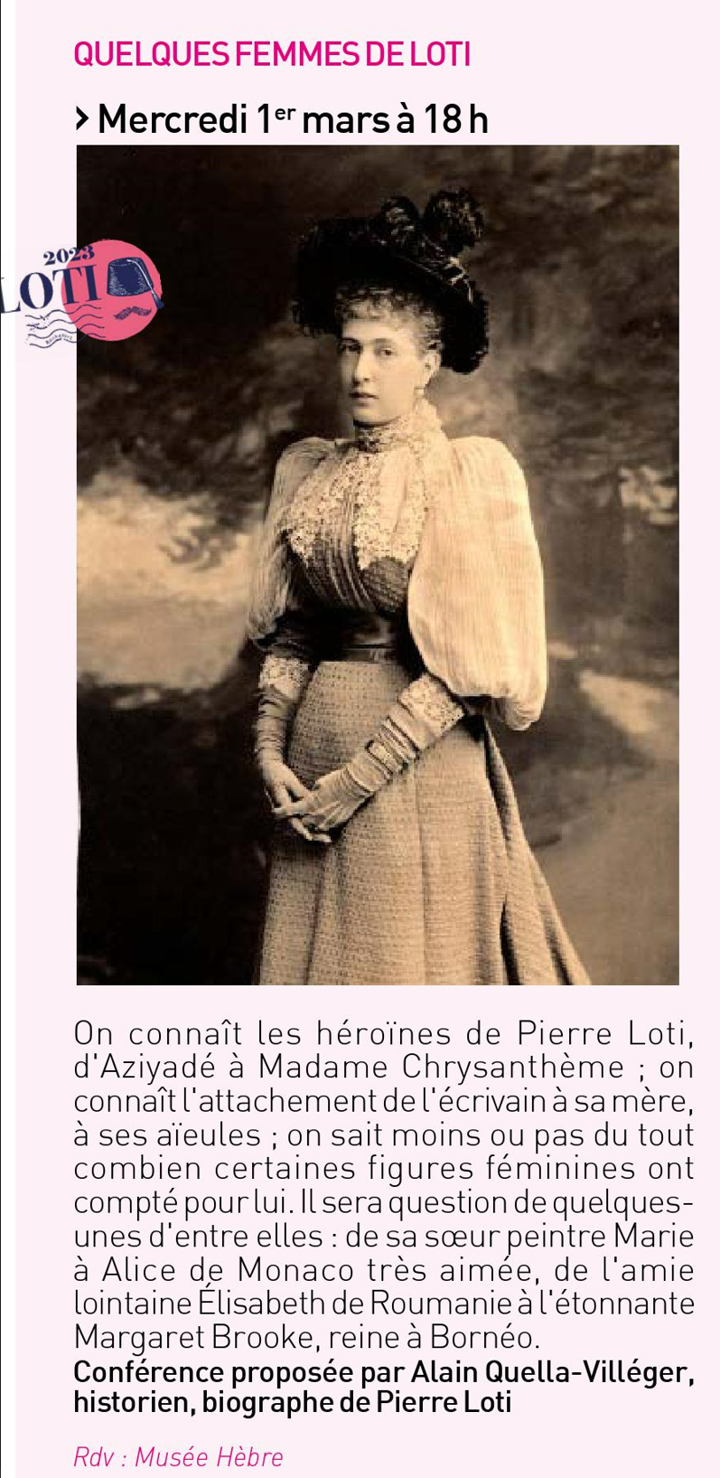 Conférence d’Alain Quella-Villéger le 1er mars 2023 au musée hèbre de Saint-Clément à Rochefort : « Quelques femmes de Loti » Posted on 10 août 2022 by AIAPL