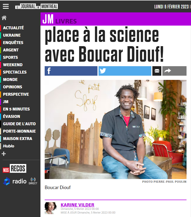 Nouveau spectacle : place à la science avec Boucar Diouf ! Posted on 6 février 2023 by AIAPL Pour lire la suite de cet article, cliquez sur ce lien : https://www.journaldemontreal.com/2023/02/05/boucar-diouf-place-a-la-science