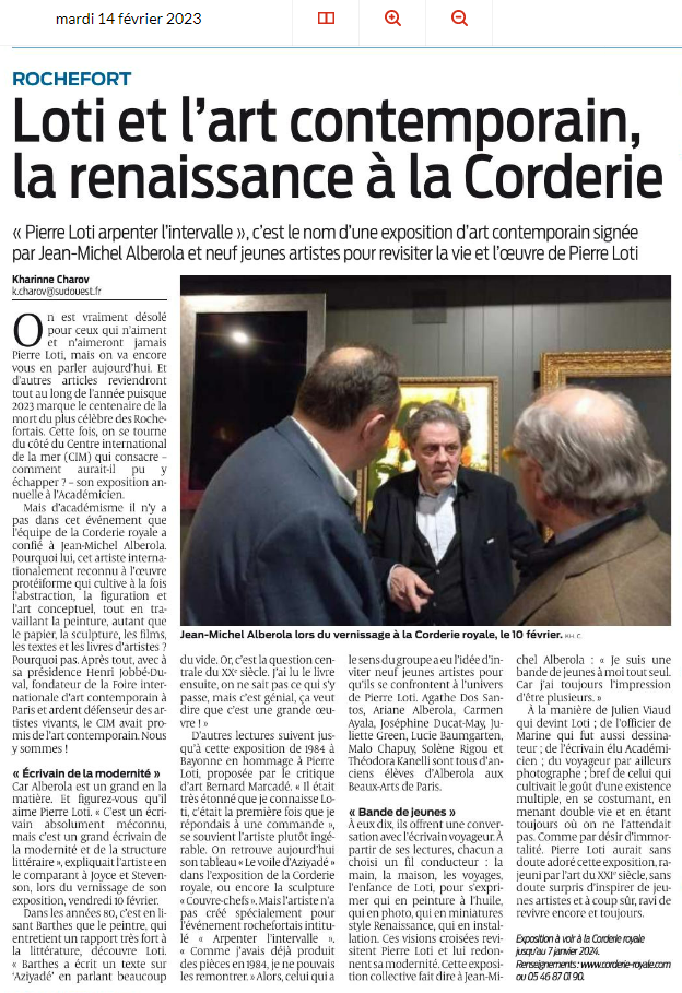 Rochefort : Pierre Loti et l’art contemporain, la renaissance à la Corderie royale Posted on 14 février 2023 by AIAPL Pour visionner la vidéo, cliquez : https://youtu.be/-G3U6SXB7qU https://www.sudouest.fr/culture/rochefort-pierre-loti-et-l-art-contemporain-la-renaissance-a-la-corderie-royale-14039527.php