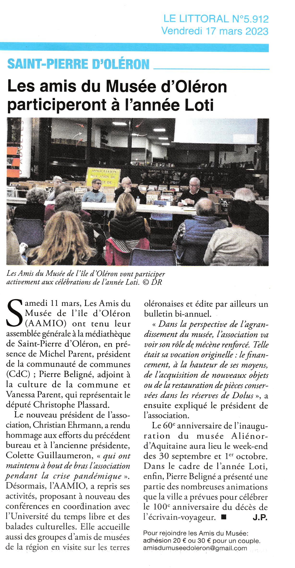 Saint-Pierre d’Oléron : Les amis du Musée d’Oléron participeront à l’année Loti Posted on 18 mars 2023 by AIAPL