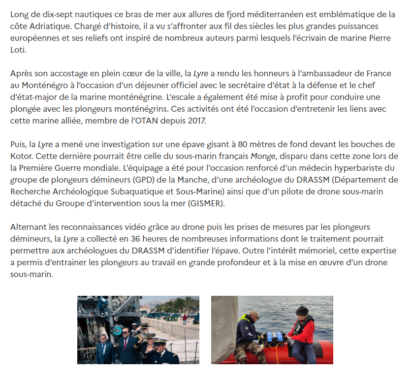 Les mythiques bouches de Kotor Posted on 16 avril 2023 by AIAPL https://www.defense.gouv.fr/marine/actualites/lyre-coopere-marine-montenegrine-effectue-expertise-depave