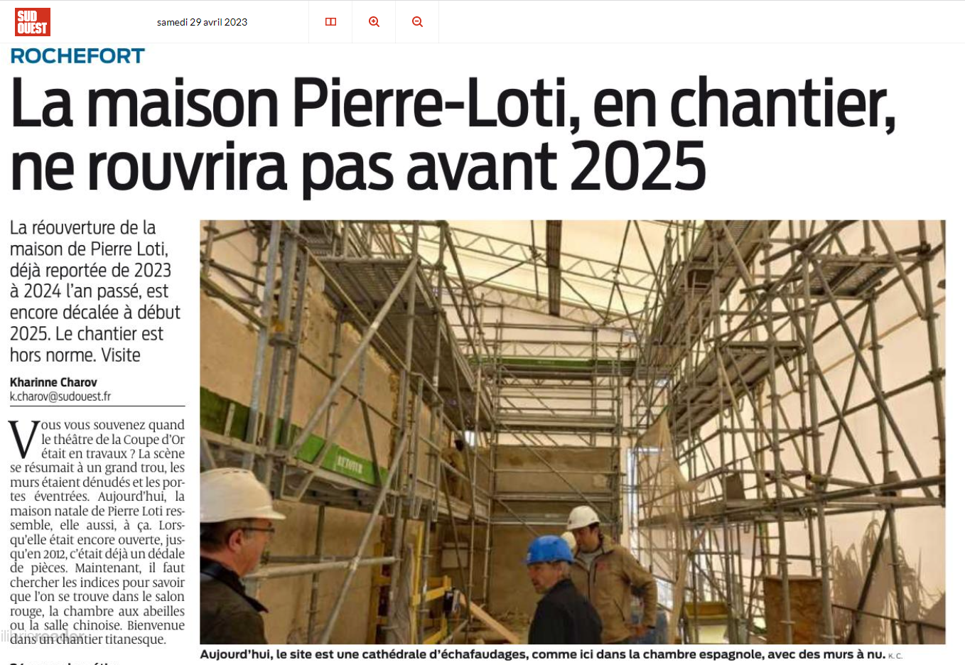 ROCHEFORT : La maison Pierre Loti, en chantier, ne rouvrira pas avant 2025 Posted on 30 avril 2023 by AIAPL