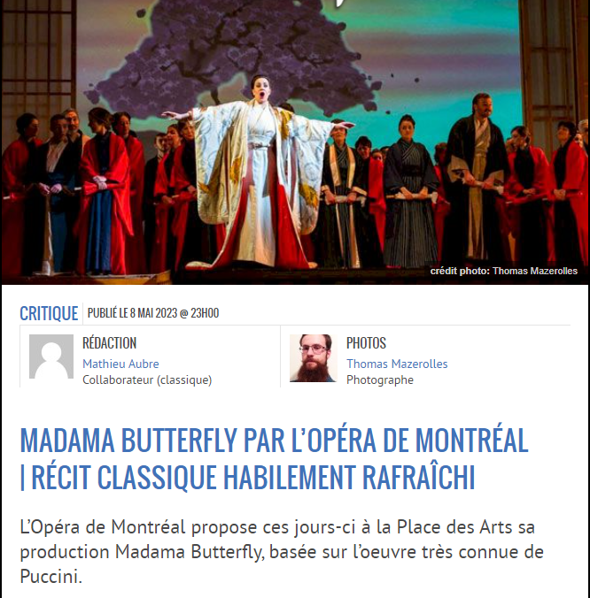 Madama Butterfly par l’Opéra de Montréal – Récit classique habillement rafraîchit Posted on 9 mai 2023 by AIAPL Cliquez pour lire l’article : https://sorstu.ca/madama-butterfly-par-lopera-de-montreal-recit-classique-habilement-rafraichi/
