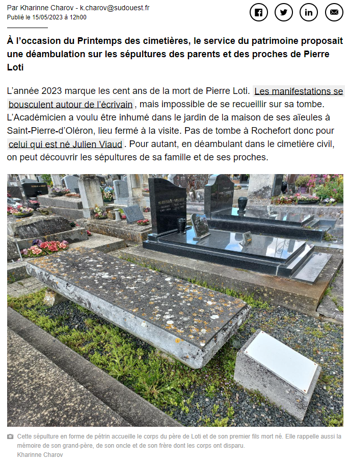 Si Pierre Loti repose à Oléron, ses proches sont inhumés à Rochefort