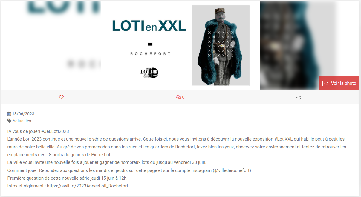 Loti en XXL : jeu Loti 2023 Posted on 15 juin 2023 by AIAPL https://www.info-flash.com/info-flash/actualites/france/nouvelle-aquitaine/charente-maritime/6226-rochefort/56070333-information.html