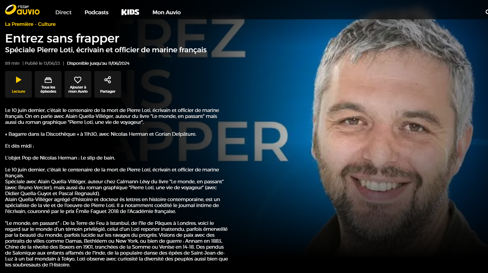 Entrez sans frapper : spéciale Pierre Loti, écrivain et officier de marine français Posted on 15 juin 2023 by AIAPL Cliquez pour écouter : https://auvio.rtbf.be/media/entrez-sans-frapper-3047673