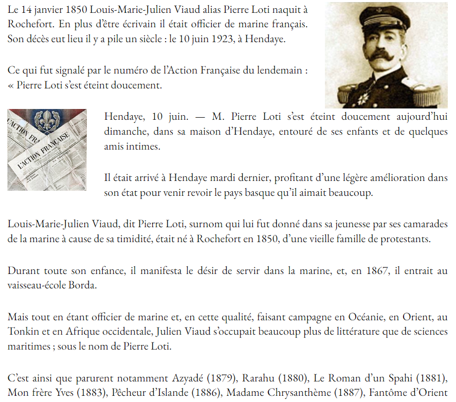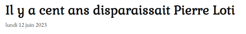 Il y a cent ans disparaissait Pierre Loti Posted on 18 juin 2023 by AIAPL https://www.jesuisfrancais.blog/2023/06/12/il-y-a-cent-ans-disparaissait-pierre-loti/