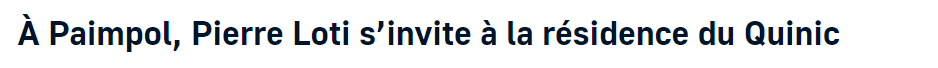 A Paimpol, Pierre Loti s’invite à la résidence du Quinic Posted on 29 juin 2023 by AIAPL https://www.letelegramme.fr/cotes-d-armor/paimpol-22500/a-paimpol-pierre-loti-sinvite-a-la-residence-du-quinic-6381298.php