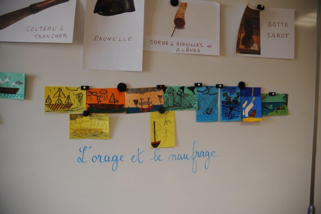 Présentation de l’ouvrage, lecture d’extraits, recherches sur les traditions et la vie des bretons à l’époque des grandes pêches en Islande ont intéressé les enfants qui ont produit des dessins exposés désormais dans la maison de Jean Aicard.