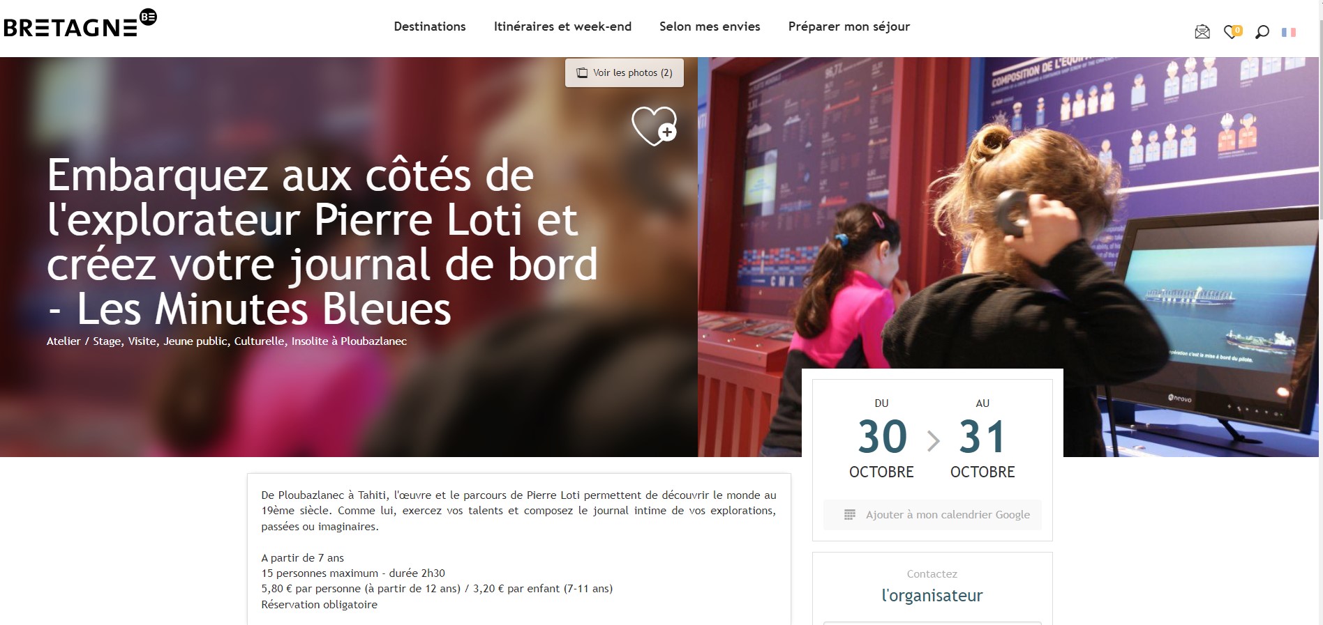 Embarquez aux côtés de l’explorateur Pierre Loti et créez votre journal de bord – Les Minutes Bleues Posted on 30 juillet 2023 by AIAPL https://www.tourismebretagne.com/offres/embarquez-aux-cotes-de-lexplorateur-pierre-loti-et-creez-votre-journal-de-bord-les-minutes-bleues-ploubazlanec-fr-4335003/