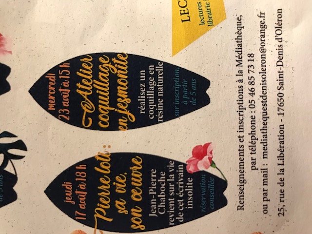 Pierre Loti : sa vie, son oeuvre, conférence de Jean-Pierre Chaboche le 17 août 2023 à Saint-Denis-d’Oléron Posted on 9 août 2022 by AIAPL Saint-Pierre-d’Oléron