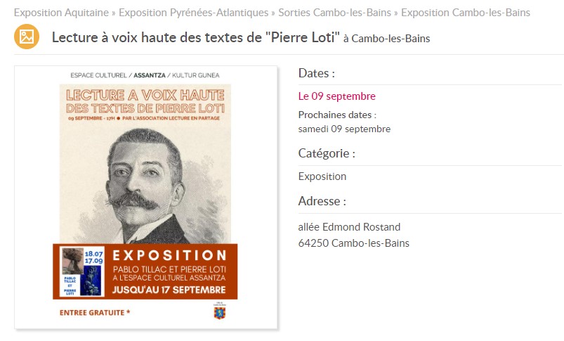 Lecture à voix haute des textes de Pierre Loti le 9 septembre 2023 à Cambo-les-Bains Posted on 1 juillet 2023 by AIAPL