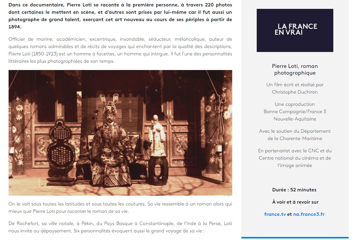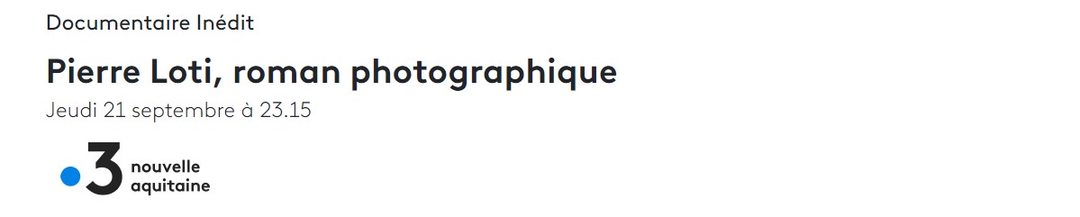 Pierre Loti, roman photographique – France 3 Aquitaine le 21 septembre 2023 Posted on 25 juin 2023 by AIAPL