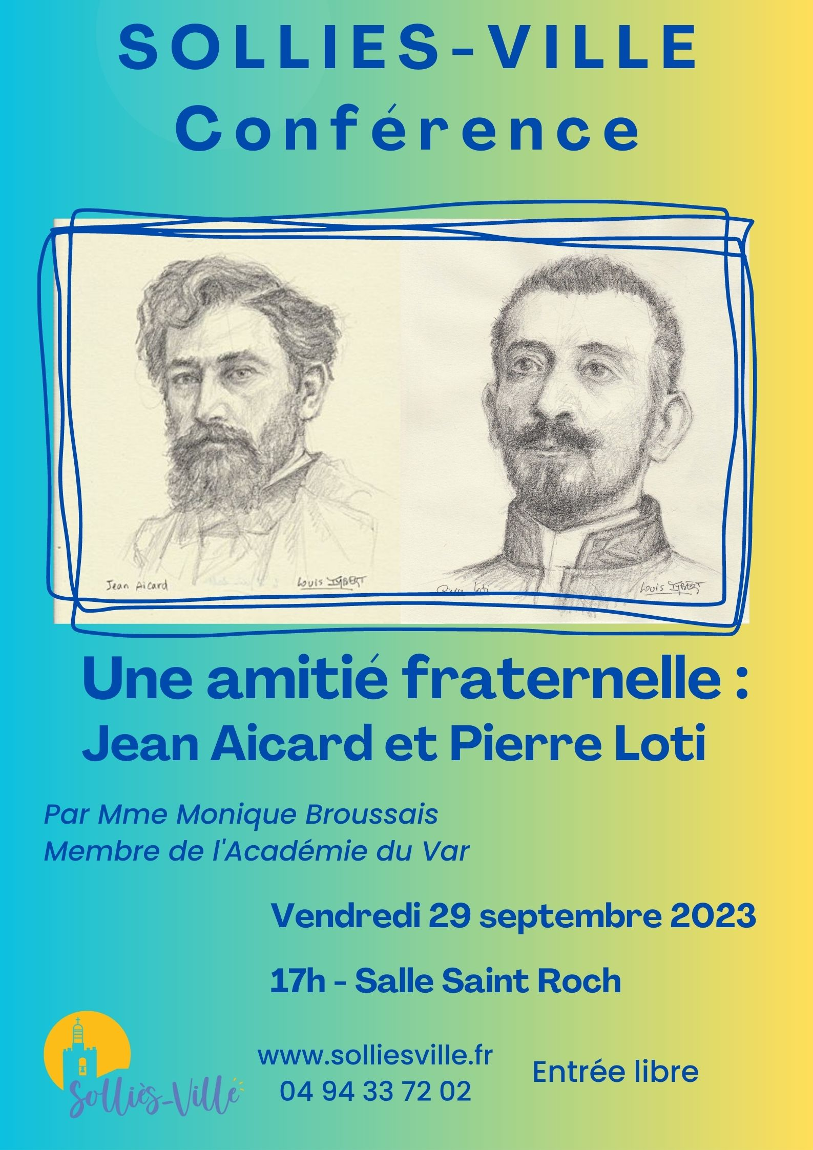 Vendredi 29 septembre 17h Salle St Roch, rue Jules Ferry : » Entre deux mers, une amitié fraternelle : Pierre Loti Jean Aicard » par Monique Broussais, membre de l’Académie du Var.