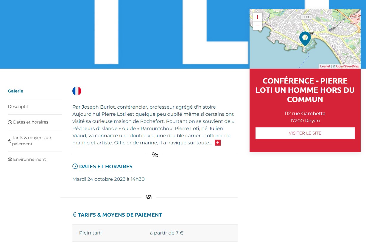 Conférence « Pierre Loti, un homme hors du commun » par Joseph Burlot le 24 octobre 2023 à Royan Posted on 10 août 2023 by AIAPL https://www.infiniment-charentes.com/fiche-sit/conference-pierre-loti-un-homme-hors-du-commun-6669243/
