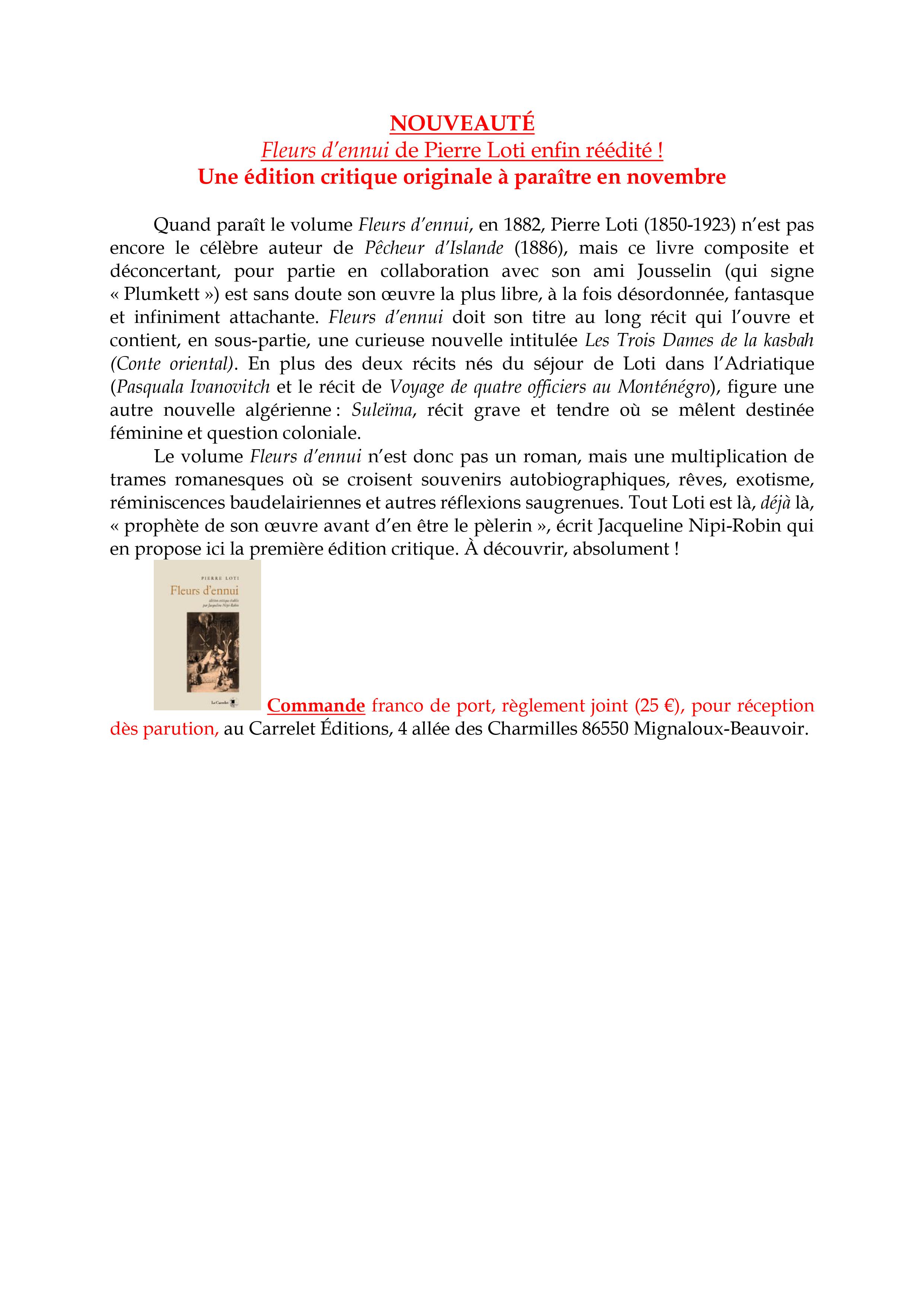 NOUVEAUTE : « Fleurs d’ennui » de Pierre Loti enfin réédité !