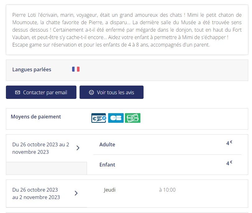 Escape game dans l’exposition Happy Loti à Fouras Posted on 8 août 2023 by AIAPL https://www.rochefort-ocean.com/organiser/agenda/agenda-complet/escape-game-dans-l-exposition-happy-loti-4446055