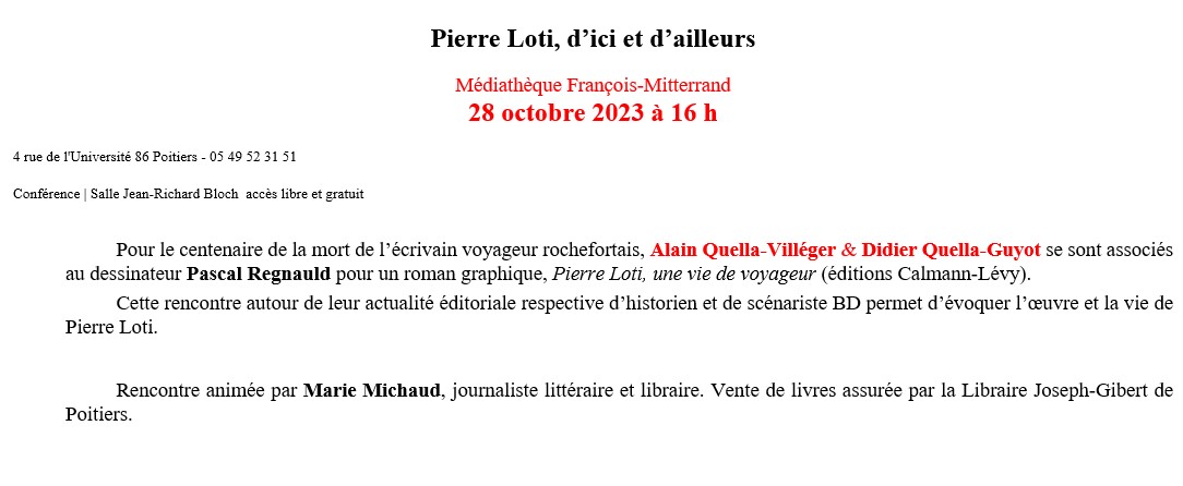« Pierre Loti, d’ici et d’ailleurs » le 28 octobre 2023 à Poitiers