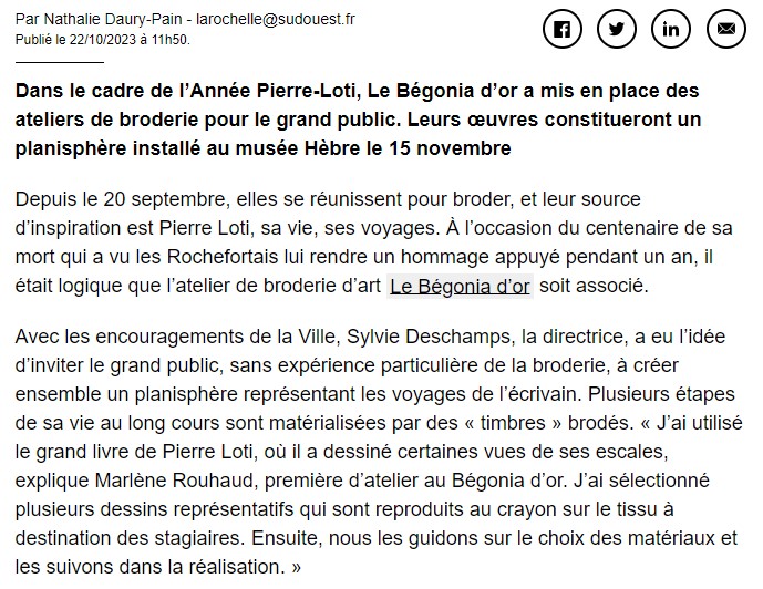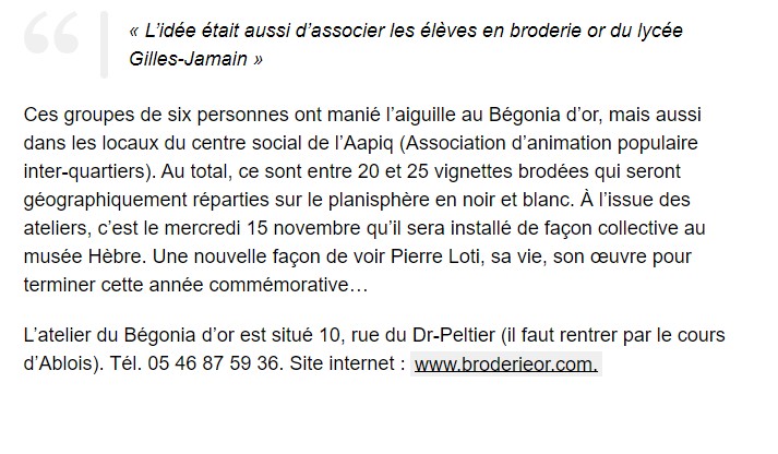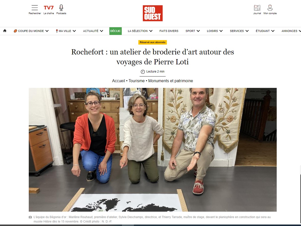 Rochefort : un atelier de broderie d’art autour des voyages de Pierre Loti Posted on 25 octobre 2023 by AIAPL