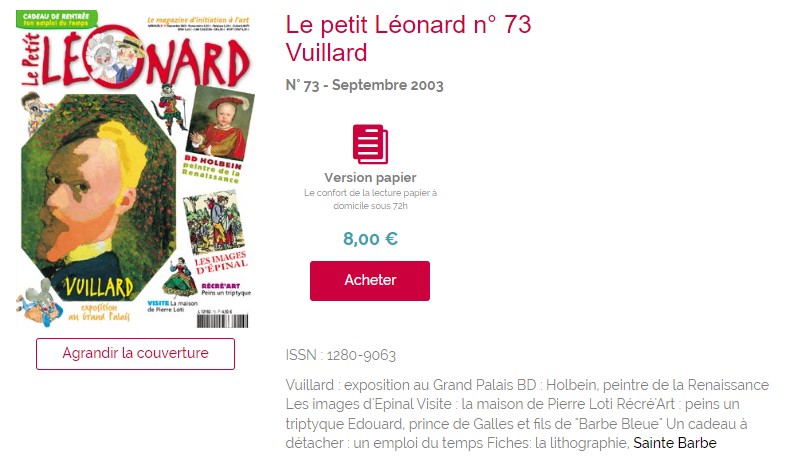 Le Petit Léonard visite la Maison de Pierre Loti Posted on 5 novembre 2023 by AIAPL https://www.faton.fr/le-petit-leonard/numero-73/vuillard/suivez-guide-maison-pierre-loti.13697.php#article_13697 Suivez le guide : la maison de Pierre Loti | Le petit Léonard n° 73 (faton.fr)