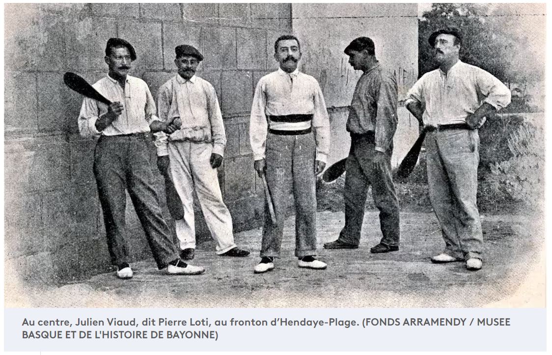 Pierre Loti découvre la région dans les années 1890. Il s’y installe rapidement et entretient une relation avec une femme d’origine Basque. Il est charmé par la vie quotidienne locale, par les joueurs de pelote et par les baigneurs des plages d’Hendaye. Il apprécie tout autant la vie mondaine de Biarritz, Bayonne ou Saint-Jean-de-Luz, qu’aux villages pittoresques de Sare, d’Ascain ou d’Ainhoa.