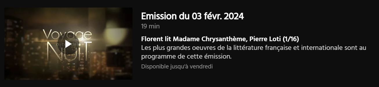 ♦ Florent Hurel lit Madame Chrystanthème dans « Voyage au bout de la nuit » (C8) – 16 épisodes