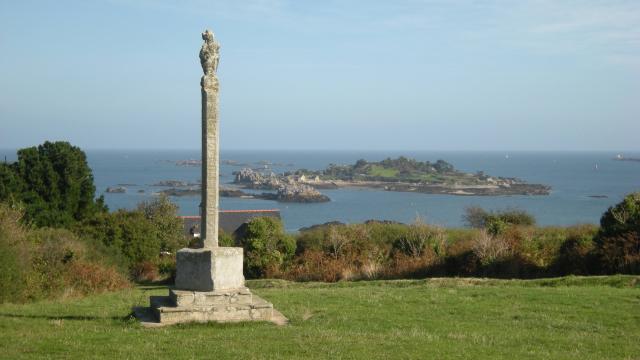 Après l’effort le réconfort. Sur la crête de la pointe de La Trinité, le point de vue est superbe : l’île de Bréhat et l’anse de Paimpol comme on ne les a jamais vues. Les couleurs sont magnifiques. À proximité, une croix en granit. Dénommée à l’origine « Croix lointaine » (croaz pell), elle a été rebaptisée « Croix des veuves », à la suite du succès de Pêcheur d’Islande. Pierre Loti, dans son roman, en a fait le lieu d’où les femmes de marins guettent le retour des goélettes et prient pour qu’aucun pêcheur ne manque à l’appel. « Autour de cette croix, écrit-il, il y avait les landes éternellement vertes, tapissées d’ajoncs courts… On voyait se découper très loin, les unes par-dessus les autres, toutes les découpures de la côte. »