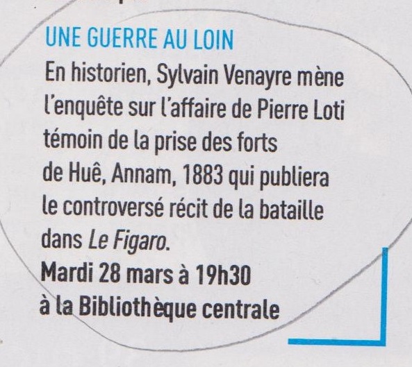Sylvain Venayre mène l’enquête sur l’affaire de Pierre Loti… Posted on 5 février 2017 by AIAPL Cliquez sur « articles précédents » situés tout en bas de cette page pour consulter toutes les actualités.