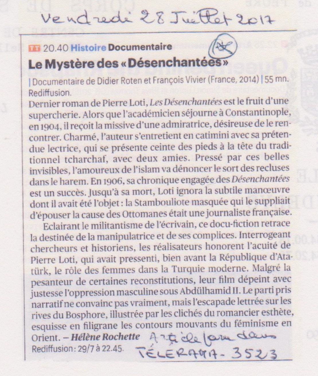 Documentaire : Le Mystère des « Désenchantées », rediffusion le 29 juillet 2017 à 22 h 45 sur la chaîne HISTOIRE de la TNT Posted on 29 juillet 2017 by AIAPL